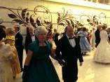 Учитывая место проведения – театр «Русская песня», бал открылся дивертисментом танцевального ансамбля «Годы не беда», который исполнил танец из блока русских народных танцев – «У нас нынче суббота!». А после, сменяя друг друга по законам церемониала, понеслись один танец краше другого. За Вальсом фигурным – Па-де-грасс, за Вальсом Бостоном — Па-д-Эспань. «Средь шумного бала» кружились пышные юбки, сверкали диадемы и ожерелья, мелькали веера. Танец захватывал и пленял все сильнее и сильнее…