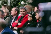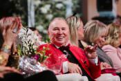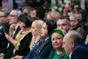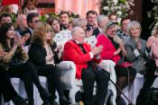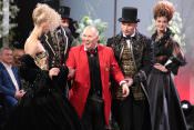 В первом ряду по правую руку юбиляра сидела Алла Пугачева, для которой Маэстро когда-то придумал балахон, ставший на долгие годы стал ее любимой «формой одежды». По левую сидела подруга и коллега Вячеслава Михайловича Татьяна Михалкова. Сам именинник восседал как король – на большом белом троне, который был изготовлен специально к торжеству.