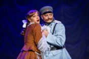 Настоящим открытием стал актерский дебют на большой сцене Дмитрия Хрусталева. Его Голохвостый энергичный, смешной и очень органичный. Пригодились и танцевальные навыки телеведущего – Свирид Петрович может похвастаться живой, почти чаплиновской пластикой.