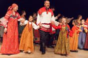 Артисты ансамбля «Театр народной музыки» под руководством заслуженной артистки России Тамары Смысловой и участники Детско-юношеской фольклорной студии «Наследие» под руководством народной артистки России Надежды Бабкиной