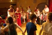 Детям эта встреча – развлечение, а взрослым – заряд эмоций и новые встречи с давно известными хороводами–карагодами, кадрилью, казачком, камаринской. Артисты «Театра народной музыки» Тамары Смысловой продемонстрируют красоту и бесконечное разнообразие танцевальных орнаментов, бытующих в разных областях России.